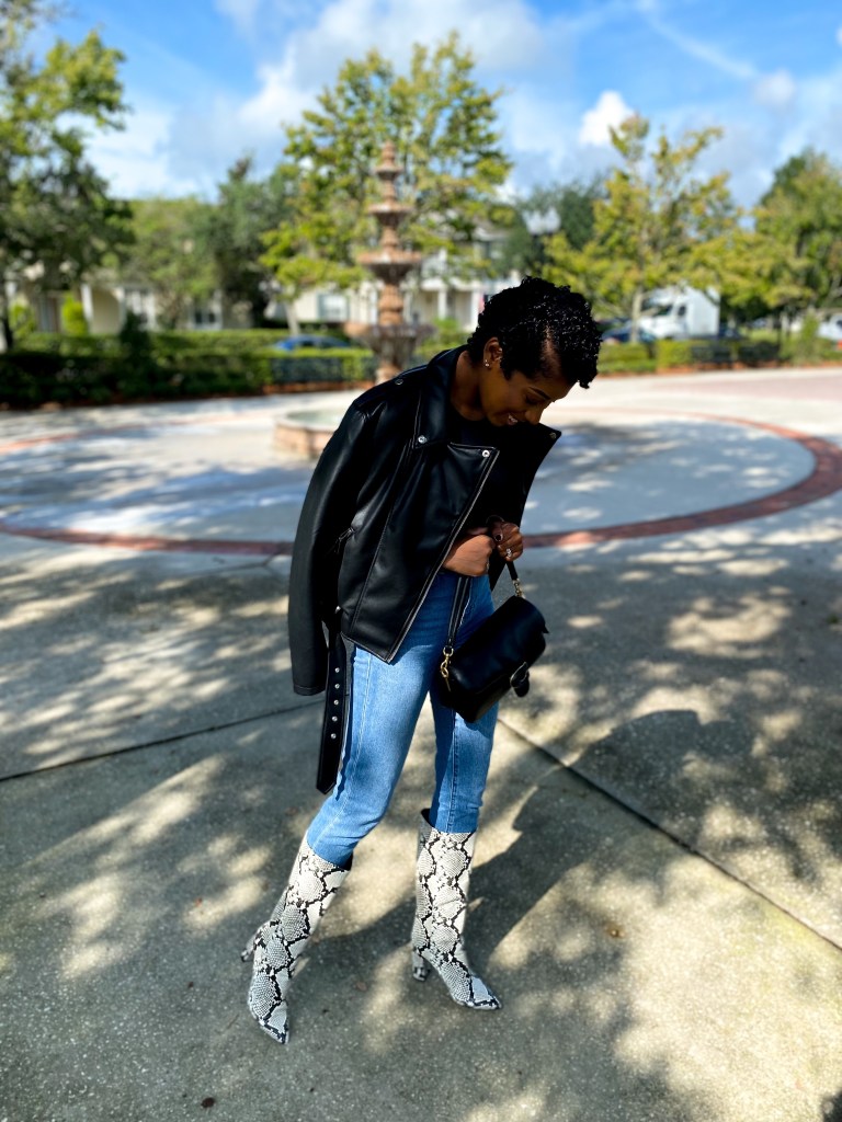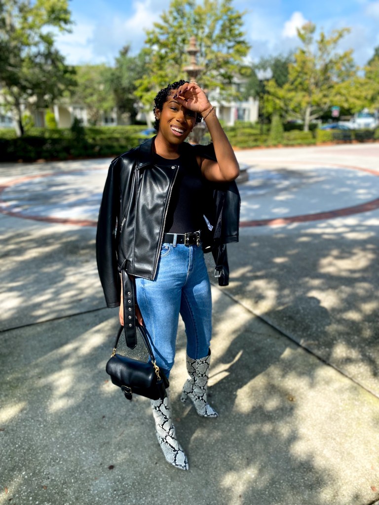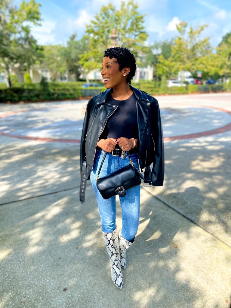 Hey Ya’ll! I hope everyone has been well lately! Fall is here and has been here and Halloween is almost here! I’ve been crossing more and more off my Autumn Bucket List lately and enjoying life! This past weekend Jeff and I went out for some coffee and I decided to get a little dressed up for it! I paired my go to denim with the black tank I keep raving about! Of course my snakeskin boots – ( I clearly need some new boots but if they isn’t broke, don’t fix it right?!) my leather jacket and of course the Coach Pillow Tabby 26! God knows I love this bag and I’m so happy about that purchase!
