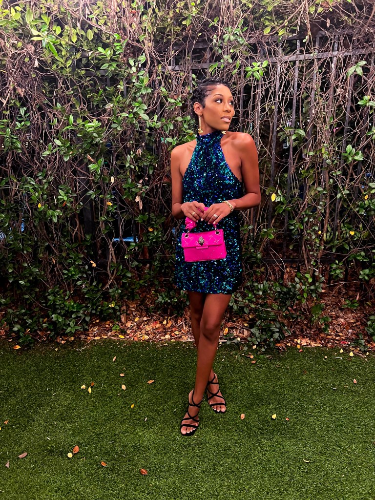 As far as the look; would you believe I found this sequin dress the morning of NYE?! I definitely got lucky with this on sale Zara find! I paired the look with these AnnexJoseph earrings, my ShoeDazzle black heels with the gold heel and my Pink Kurt Geiger bag for a pop of color!