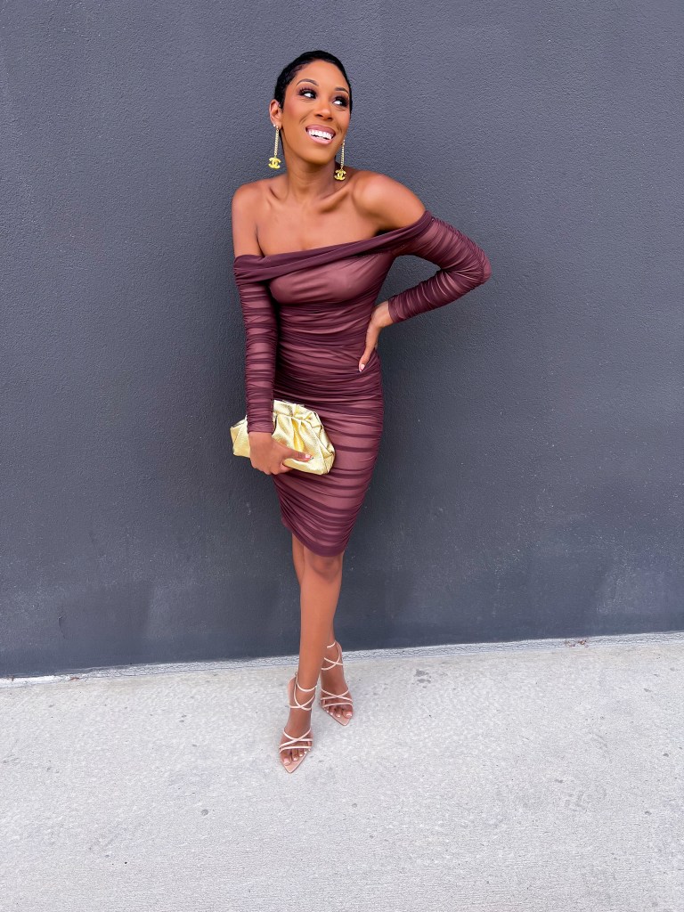 Anywho, Jeff and I frequent a sushi restaurant in Downtown Orlando and had to visit it yet again for date night. Our go to order is 2 Rock N’ Roll Rolls and a Volcano Roll. After our sushi dinner we headed a few doors down to a local Cocktail Room with amazing decor, a great vibe and cocktails that are unrivaled! It was such a great night and I felt so cute in this dress from Shein! I paired it with my AnnexJoseph Chanel earrings, Ego Official heels and my Gold Dumpling Pouch.