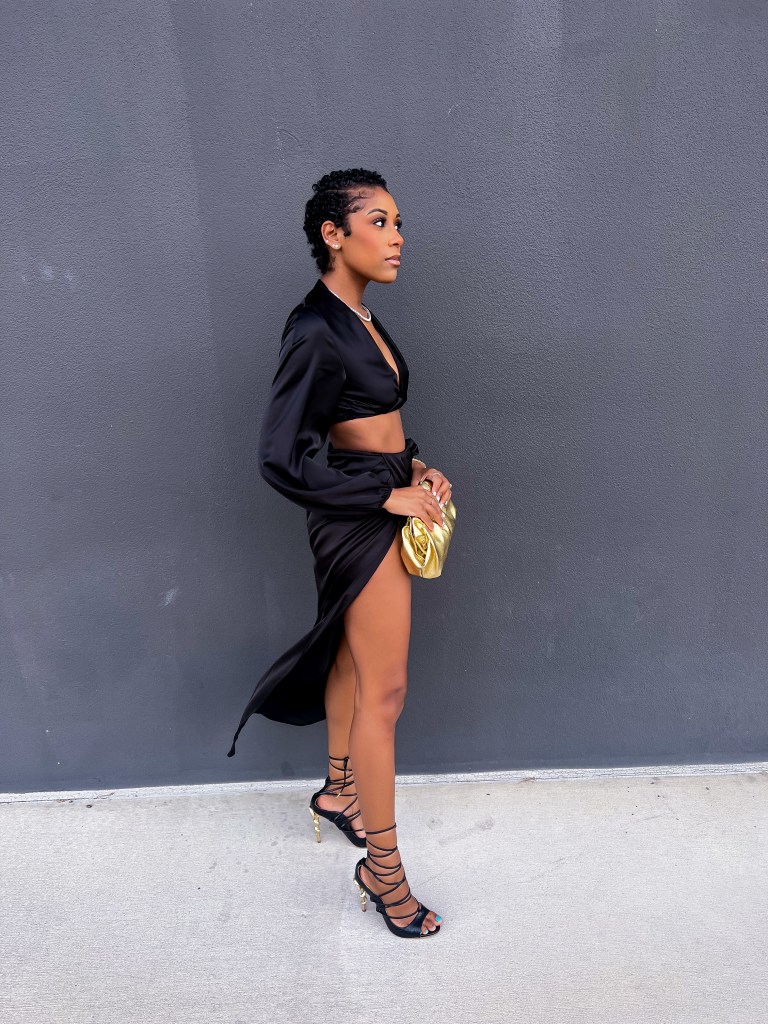 Typically, I like to live by the notion Less is More especially when it comes to showing skin. There’s a fine line (IMO) between sexy and overdoing it! I’ve always said you pick one asset and run with it so if you’re showing leg then don’t show cleavage and vis versa but with this look I definitely broke my own rule and I’m NOT mad at it.