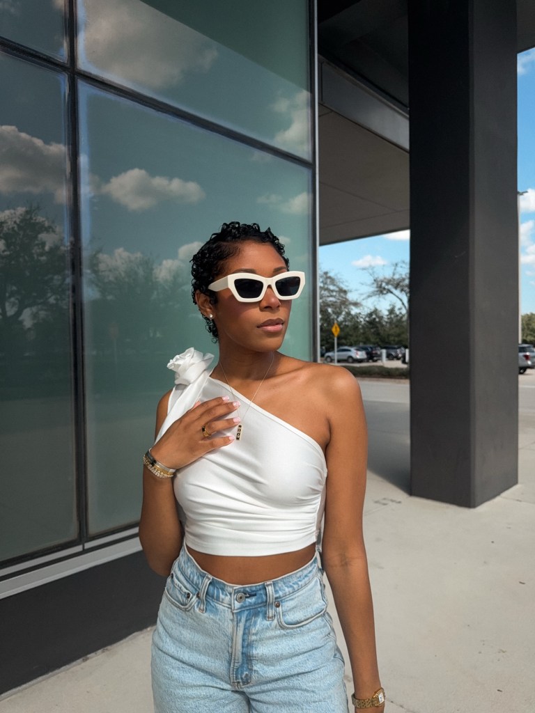 Go for one bold piece. Whether it’s a dramatic sleeve, unique neckline, or an unexpected cut, let one element take center stage. Keep the base simple. High-waisted shorts or straight-leg jeans let your statement piece shine. Play with contrast. Crisp whites and light denim are summer’s best friends, but don’t be afraid to add texture or pattern in your accessories. Comfort is key. Choose pieces you can move in. Confidence always looks good.