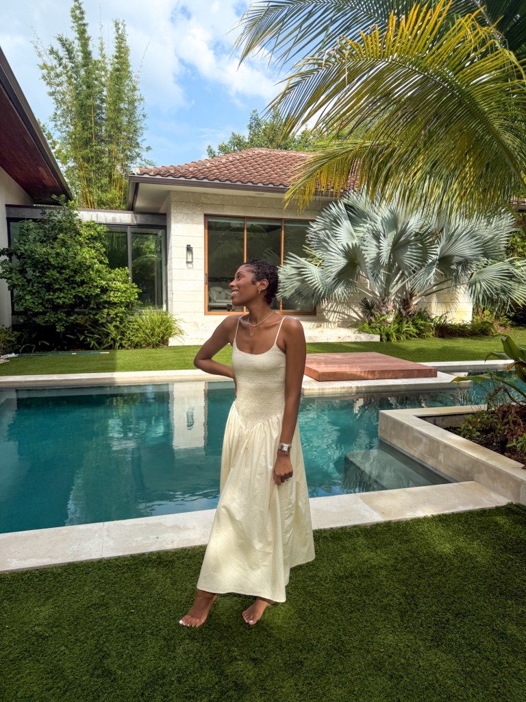 Miami Beach never fails to bring out my love for easy, luxurious fashion. This past weekend, I spent some much-needed time soaking in the sun, sipping on tropical cocktails, embracing the vibrant energy of the city—and of course, celebrating something special with family! I had to bring a vacation-ready outfit that felt just as effortless and elevated.